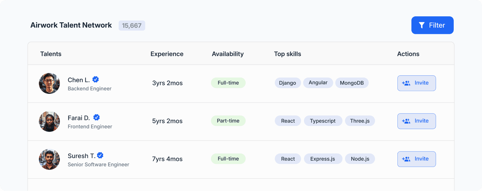 Review AI-ranked, pre-vetted candidates instantly for relevance and fit. Use our advanced filters to cut through the noise.